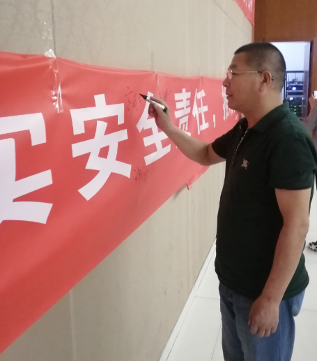 公司领导高总带头,与全体参会人员在主题条幅上签字,增加“安全生产月”活动责任感、使命感。